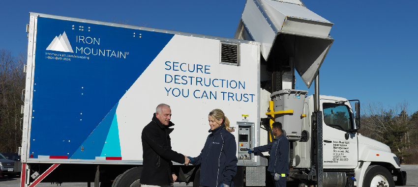 Iron Mountain secure shredding services protect the privacy of your information by destroying paper records and documents, plastics, and media in a cost-efficient, safe, sustainable, and compliant way.