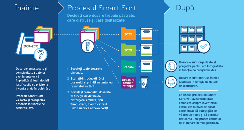 Cu Iron Mountain Smart Sort puteți. Smart Sort este o soluție simplă și economică, care vă ajută să preluați în sfârșit controlul asupra inventarului de înregistrări.